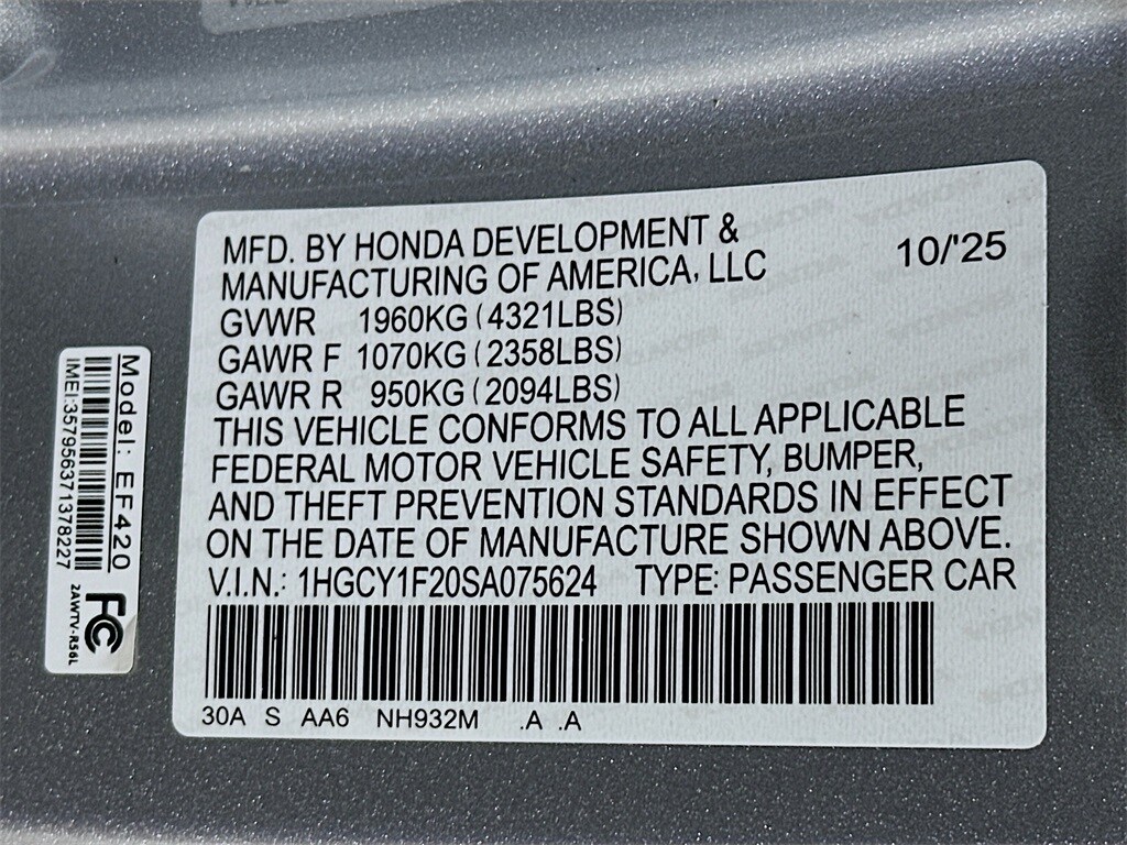 - 1HGCY1F20SA075624