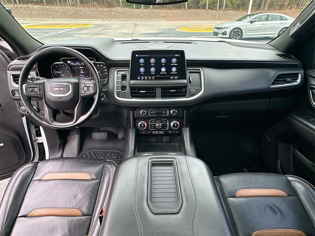 Looking for a premium, capable SUV near Augusta, GA? This 2021 GMC Yukon AT4 in Summit White is a CARFAX Certified, one-owner 4WD SUV with a Clean CARFAX and low mileage, perfect for families and adventure seekers in Evans, Martinez, North Augusta, and Columbia County. Powered by a 5.3L EcoTec3 V8 engine paired with a 10-speed automatic transmission with overdrive, this Yukon AT4 delivers powerful towing, smooth highway performance, and confident off-road capability. What makes this 2021 GMC Yukon AT4 ideal for local buyers? It features the AT4 Premium Package, dual-pane panoramic sunroof, heated and ventilated front seats, heated second-row outboard seats, Bose 9-speaker audio, hands-free programmable rear liftgate, power-retractable assist steps, 3rd-row 60/40 power-folding seats, steering-wheel-mounted controls, SiriusXM with 360L, and advanced safety features including Safety Alert Seat and HD rear vision camera. With rugged styling, red recovery hooks, off-road suspension, and premium leather interior, this Yukon is perfect for family trips, towing boats or trailers, or navigating Columbia County and the CSRA with comfort and confidence. Gerald Jones Auto Groupâ"voted Best in Columbia County for 13 years and Cyber Cityâs Best Place to Buy a New and Used Carâ"offers trusted service, transparent pricing, and easy financing. Schedule your test drive today or contact our team to experience this low-mile 2021 Yukon AT4 before itâs gone.