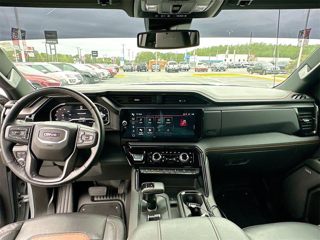 Experience rugged sophistication and uncompromising capability with this 2024 GMC Sierra 1500 AT4 in striking Thunderstorm Gray. This CARFAX One-Owner 4WD powerhouse is equipped with a commanding 6.2L EcoTec3 V8 engine paired with a smooth 10-speed automatic transmission, delivering robust performance whether youâre conquering off-road trails or handling heavy towing tasks. Wrapped in aggressive styling, the AT4âs bold black chrome grille and header insert bars, along with red recovery hooks and an AT4-branded spray-on pickup bedliner, ensure this truck looks as tough as it performs.